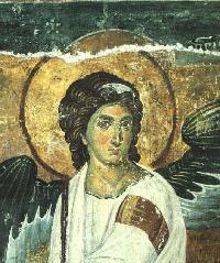 severoistočnom je prikazan arhanđel Gavrilo, koji sleće s neba i,
