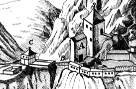 Тврђава је тада имала пет кула. Главна кула, на северном делу, која је доминирала градом, имала је приземље, два спрата и круниште са зупцима. Била је покривена купастим кровом. Топови за одбрану били су смештени на првом и другом спрату. Друга кула, квадратне основе, контролисала је улазну капију. И у њој су били смештени топови.